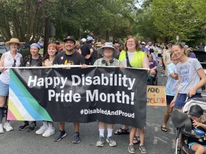 The parade will make a circle, starting at the Reality Ministries Center parking lot, going through Main St, and then returning to the Center (about 1/2 mile or a 15 minute leisurely roll/walk). After the parade, visit some of the informational tables, some of which will feature businesses which hire people with disabilities. Purchase a simple dinner; they are planning vegan, vegetarian and omnivore options. Sensory friendly spaces and bathrooms inside the Reality Center building provide a way to beat the heat. A schedule of amazing speakers will share “what makes them proud to be Disabled”; unfold your chair and relax as you listen.